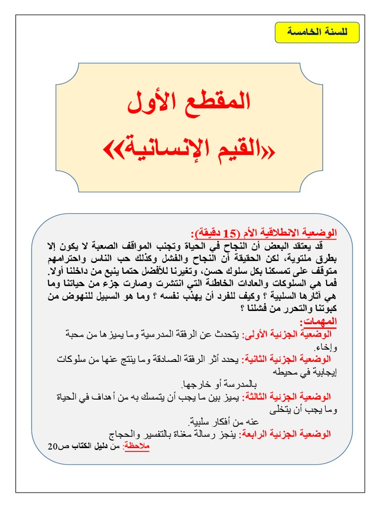 كيفية كتابة الوضعية الادماجية للسنة الخامسة ابتدائي