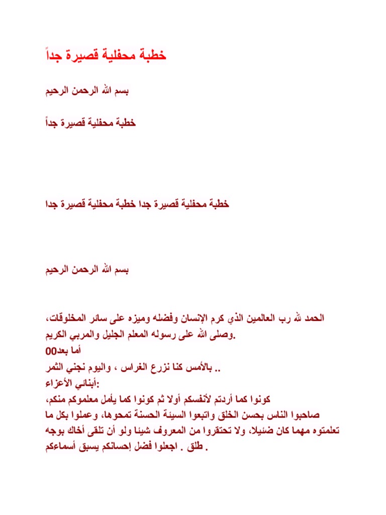 لخطبة محفلية خطبة قصيرة جدا